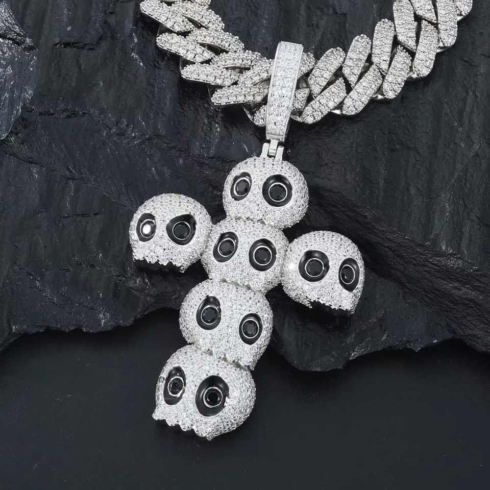 Hip Hop rapero joyería cubana Cubic Zirconia Iced Out CZ Cruz colgante collar cadena de eslabones cubanos