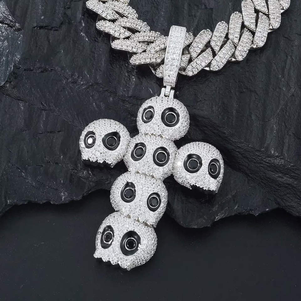 Colgante de cruz con ojos de buey estilo hip hop, con incrustaciones de moissanita, chapado en oro de 14k sobre plata 925, para joyería infantil unisex