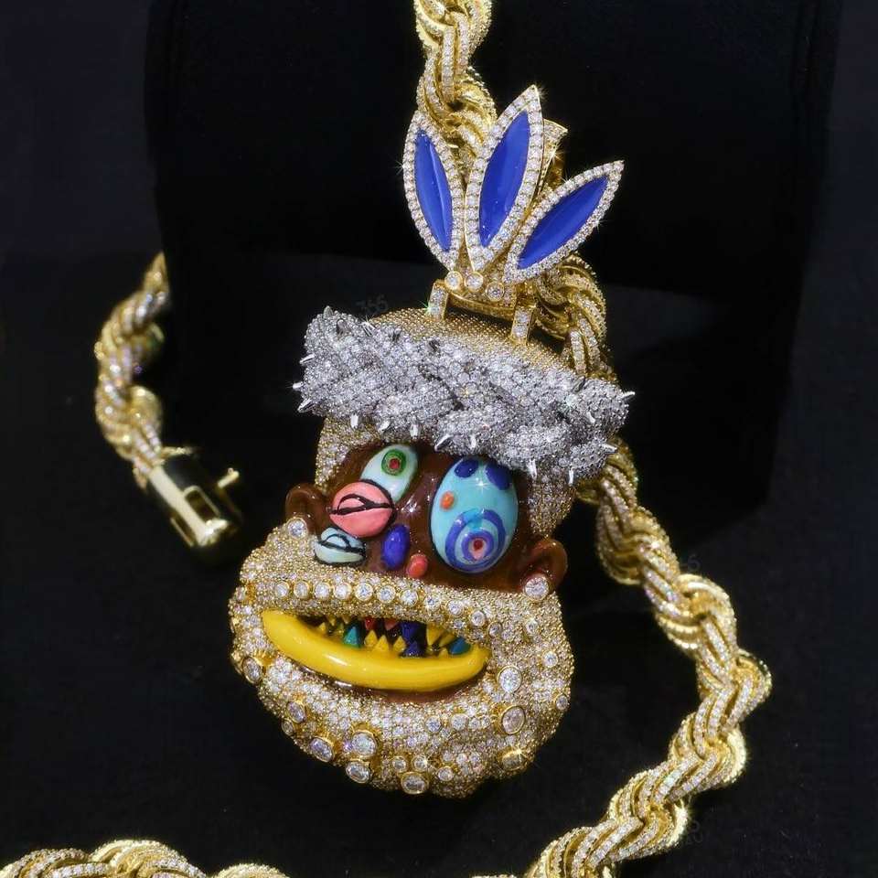 Hip Hop Rapper Travis Scott Funny Moissanite Silver Customized Iced Out Cartoon Jesus Pendant