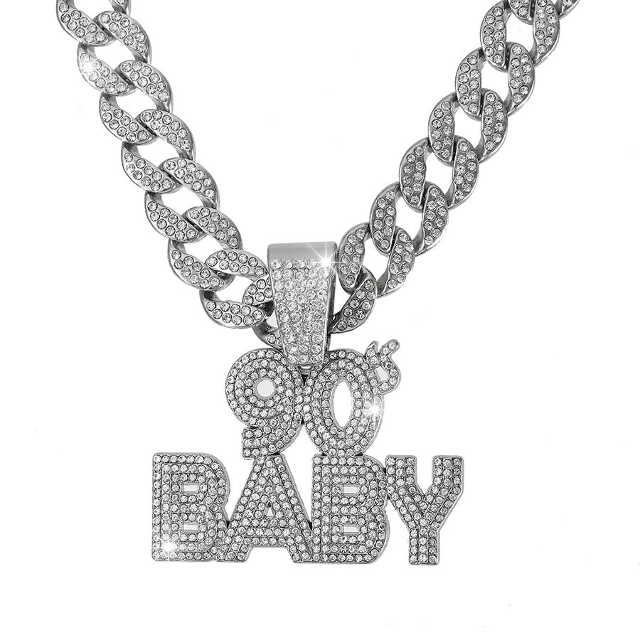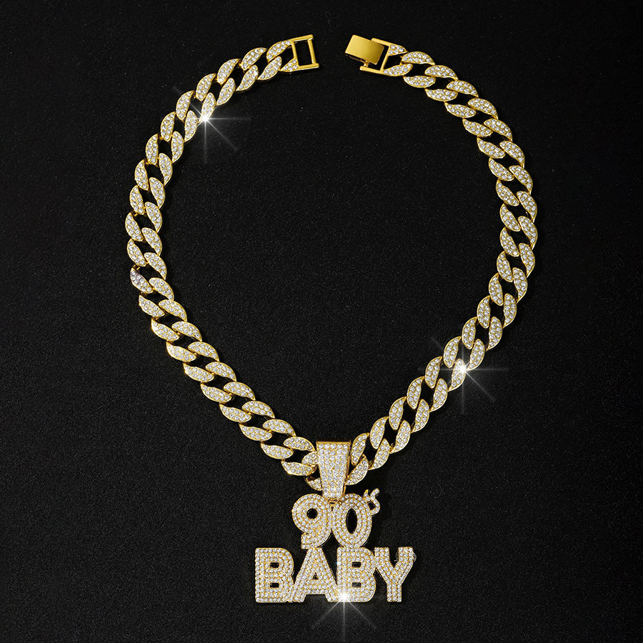Collar de Joyería para Hombre y Mujer, Estilo Hip Hop, con Diamantes de Imitación Brillantes, Cadena Cubana Chapada en Oro, Colgante con Letra BABY de los 90