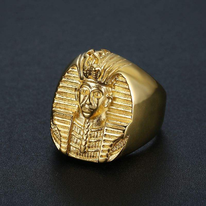 Anillo Hip Hop de Acero Inoxidable Chapado en Oro con Diseño de Faraón Egipcio, Joyería Masculina para Regalo