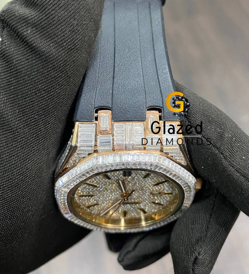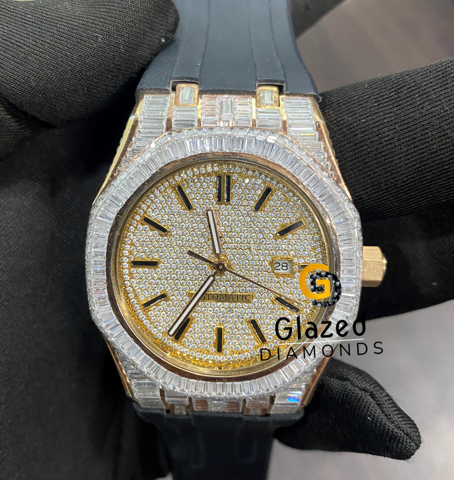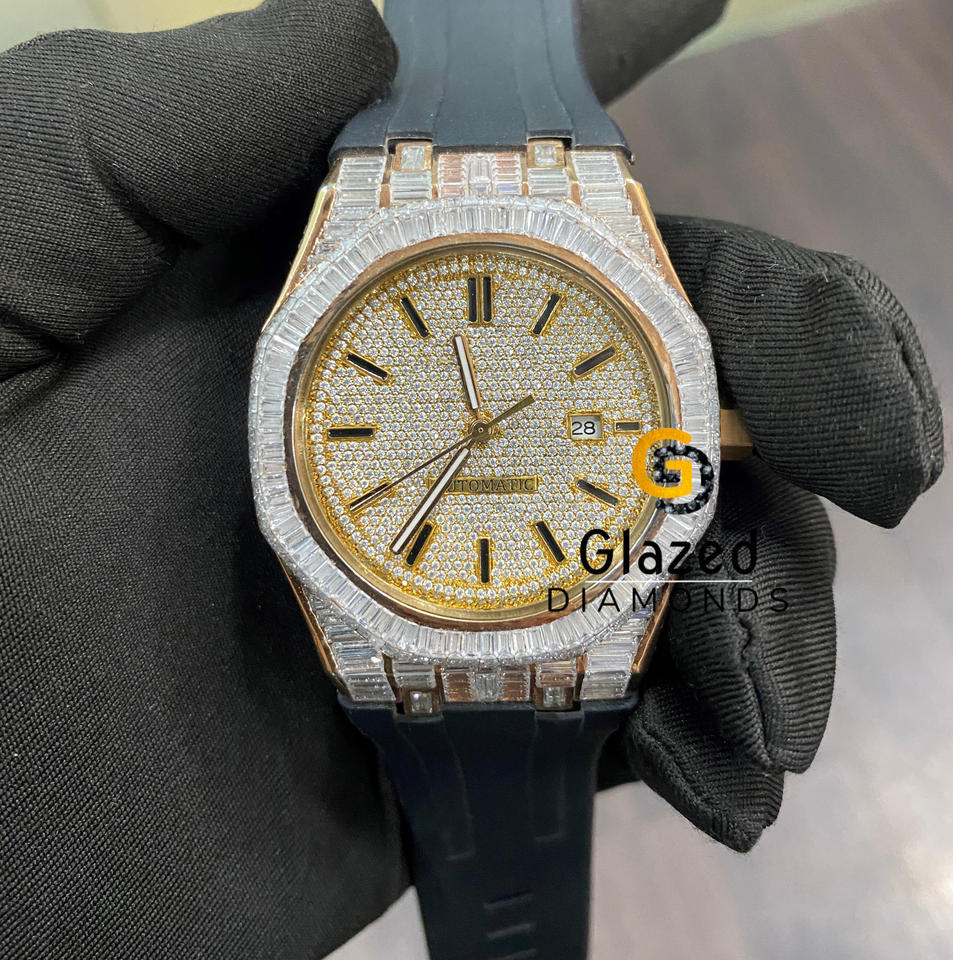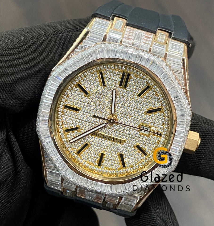 Estilo Hip Hop Atractivo Iced Out Diseñador Moissanite Redondo Y Baguette Diamantes Reloj de pulsera Hecho en acero inoxidable para hombres