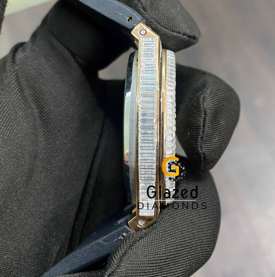 Estilo Hip Hop Atractivo Iced Out Diseñador Moissanite Redondo y Baguette Diamantes Reloj de pulsera Hecho en acero inoxidable