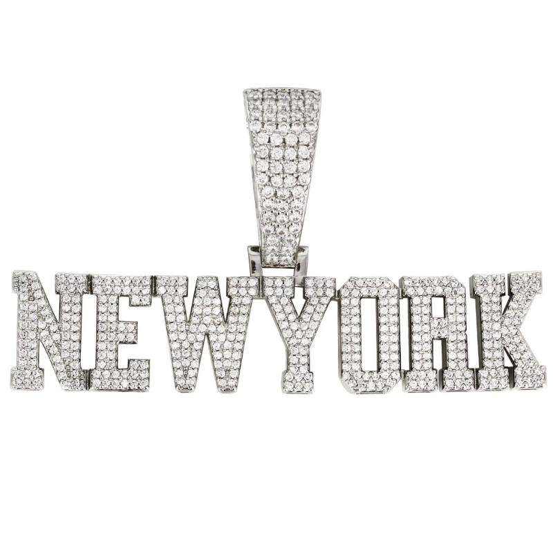 Colgante de Moissanita con Letra de Nombre Personalizada Estilo Hip Hop, Chapado en Oro Blanco sobre Plata de Ley 925, Totalmente Engastado, con Engaste de Garra para Fiesta