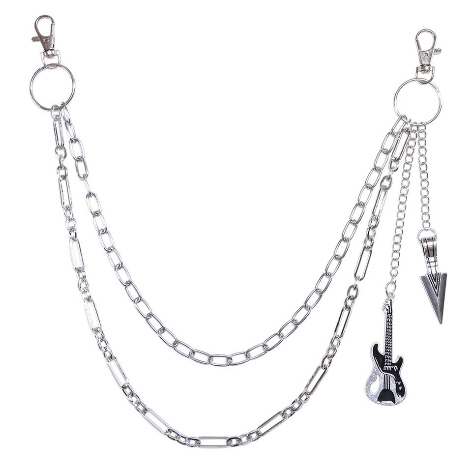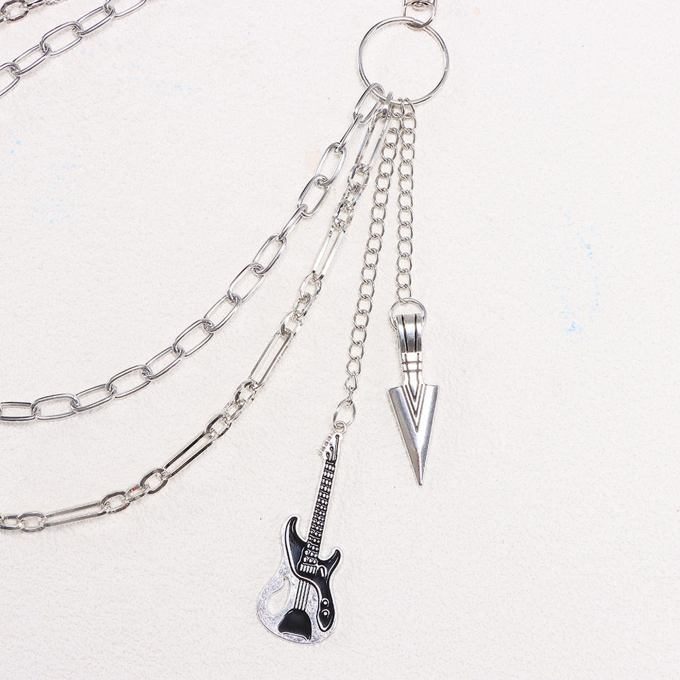 Cadena de cintura metálica de doble capa estilo hip hop con colgante de guitarra para uso casual, cadena corporal de aleación de zinc