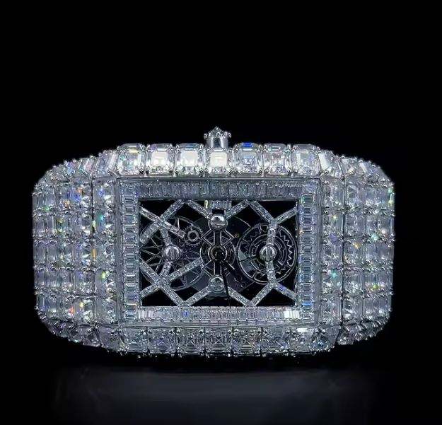 Reloj Mecánico de Lujo Estilo Hip Hop para Hombre con Movimiento Automático ETA, Piedras Talladas VVS1, Diamante Moissanita Cuadrado, Joyería con Incrustaciones