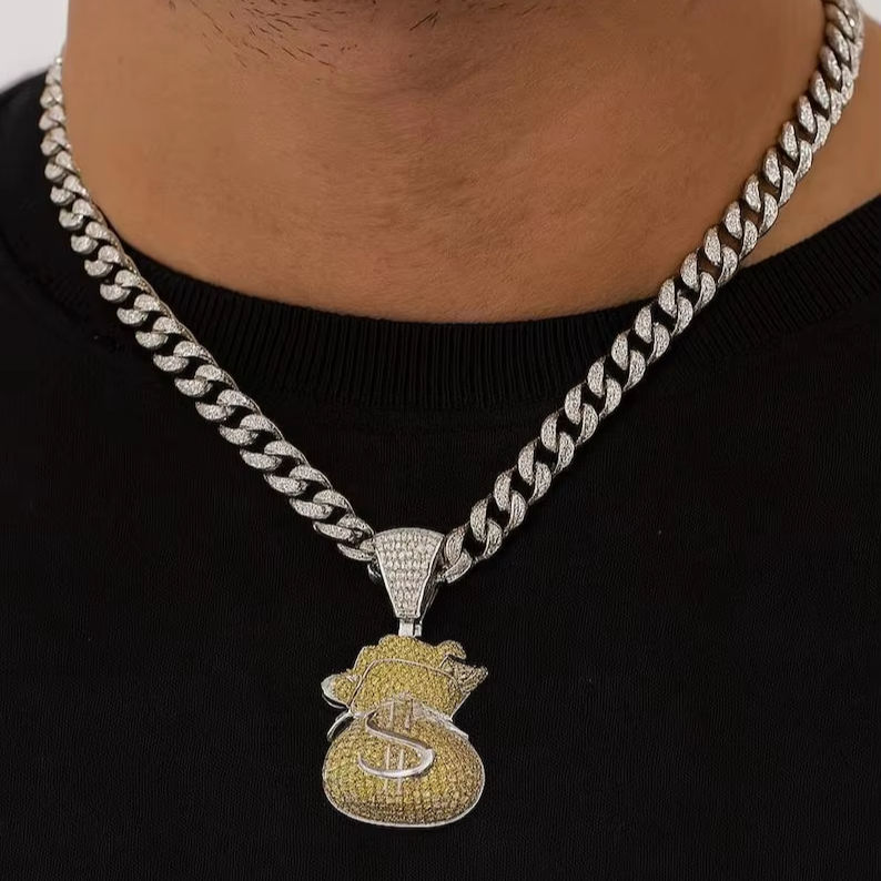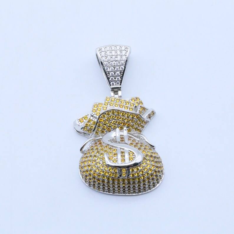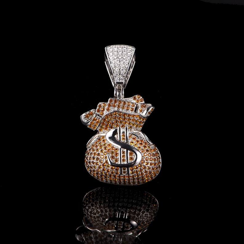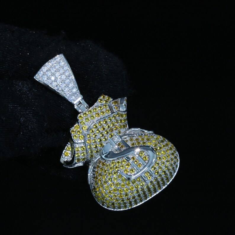 Colgante de moissanita chapado en rodio estilo Hip Hop con diseño de bolsa de dinero, plata de ley 925, joyería de moda urbana para hombre