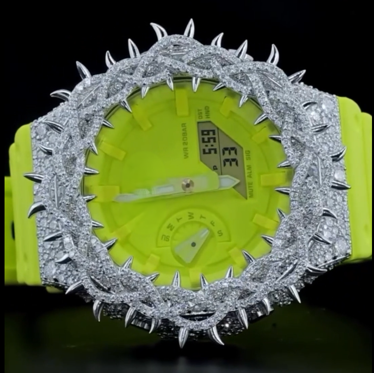 Reloj de Acero Inoxidable Estilo Hip Hop, Reloj de Pulsera con Incrustaciones Hechas a Mano, Dos Tonos, Chapado en Verde, Diamantes, Reloj de Lujo de Alta Calidad para Hombre