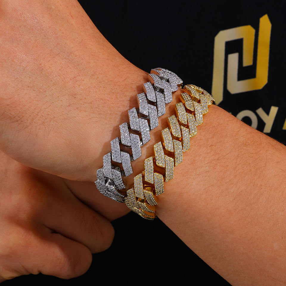 Pulsera de Zirconia Hip Hop con Tres Hileras de Rombos, Cadena Cubana, Accesorios, Pulsera para Hombre, Moda Tanjing, Collar Lijing