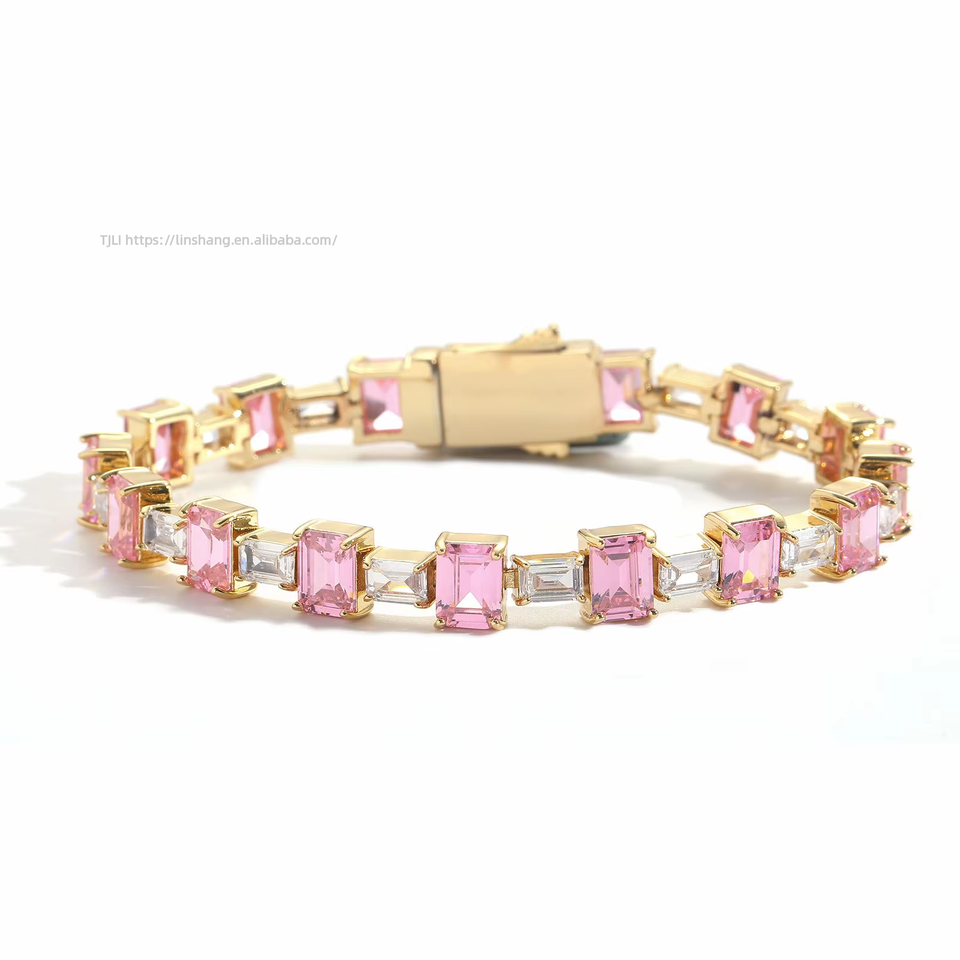 Pulsera Hip-Hop con Zirconia Cuadrada a Juego de Colores, Cadena de Tenis Sencilla, Zirconia Hip-Hop para Hombre y Mujer, Moda Tanjing