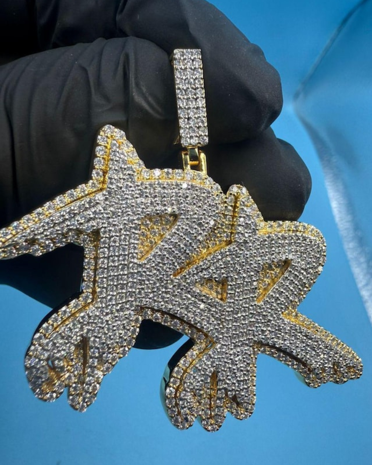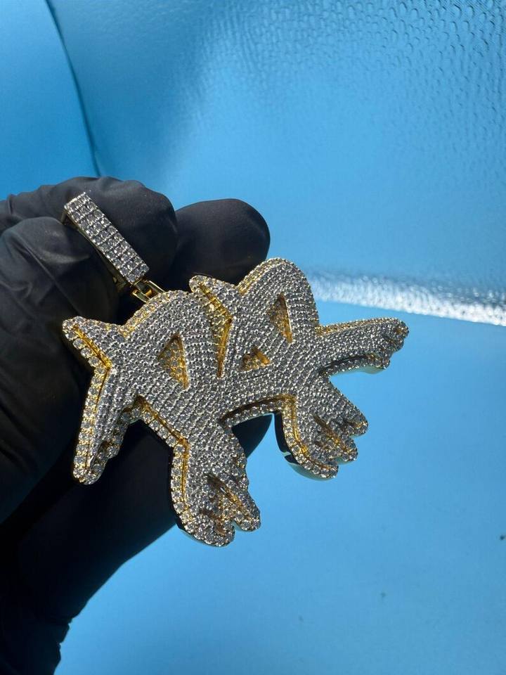 Colgante de Lujo con Moissanita y Plata de Ley 925 Bañada en Oro de 18K, Estilo HipHop Rapper, con Brillo Personalizado para Fiestas y Eventos