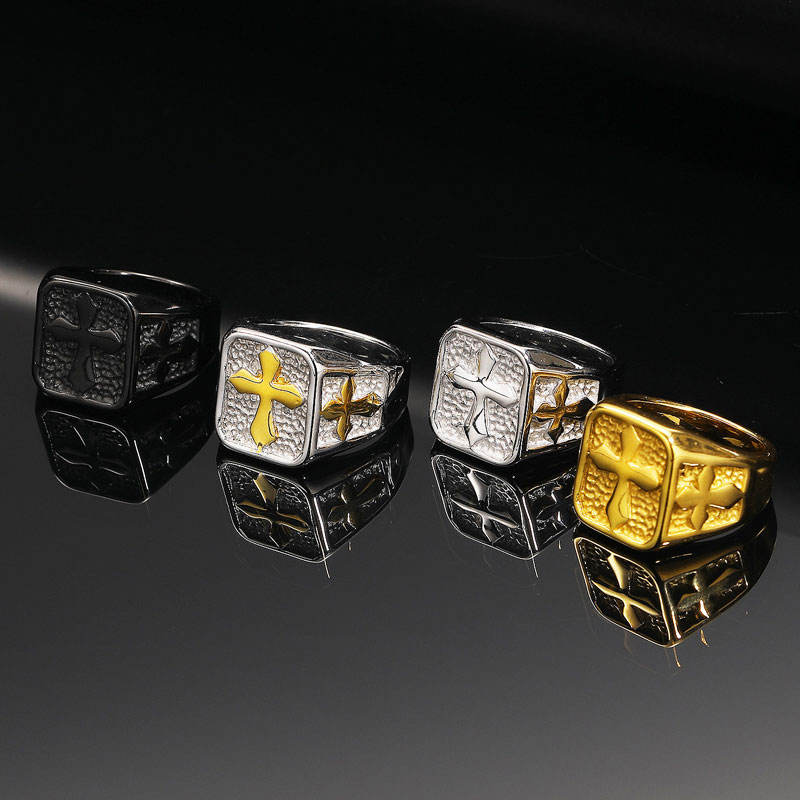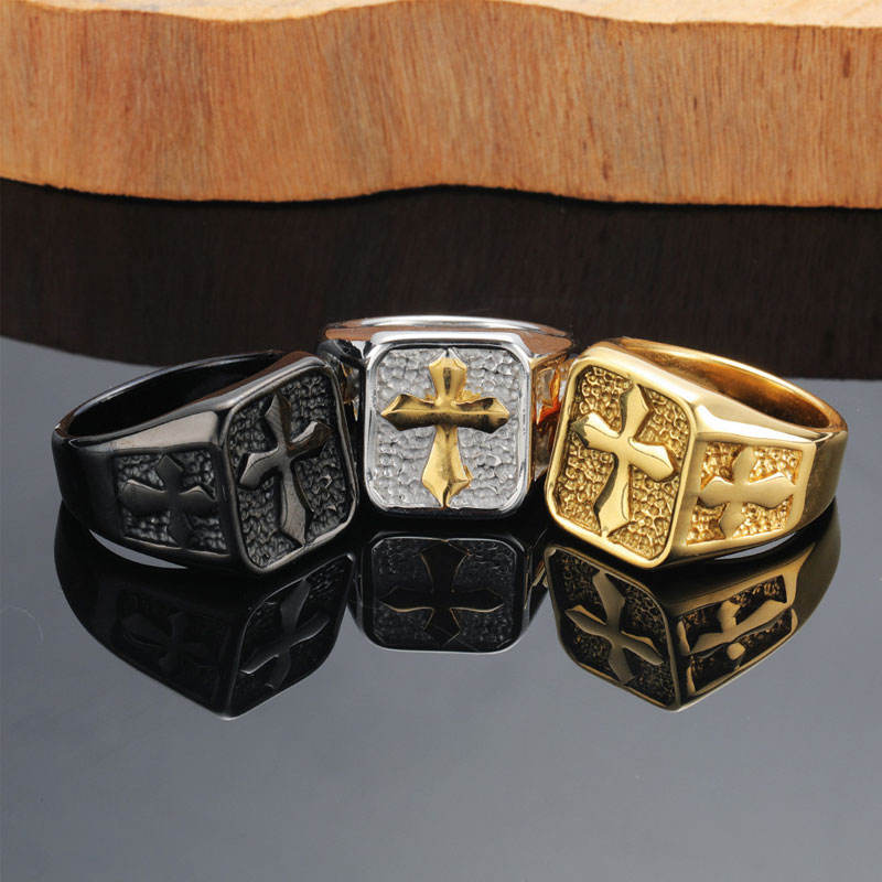 Anillos Hiphop Resistentes al Deslustre e Impermeables, de Buena Calidad, Chapados en Oro PVD de 14k y 18k, Anillo Grueso con Cruz de Acero Inoxidable 316L para Hombre