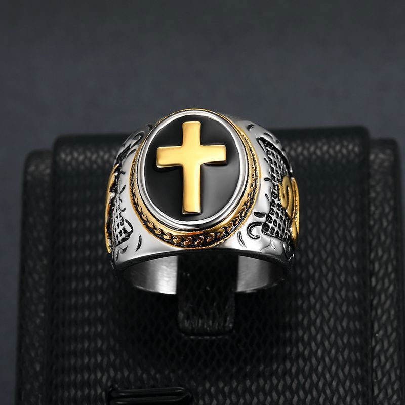 Anillos Hiphop Resistentes al Deslustre e Impermeables, de Buena Calidad, Chapados en Oro PVD de 14k y 18k, Anillo Grueso con Cruz de Acero Inoxidable 316L para Hombre