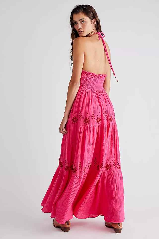 Ropa de playa Hippie para mujer, vestido de fiesta con espalda descubierta bordado, bohemio, para verano