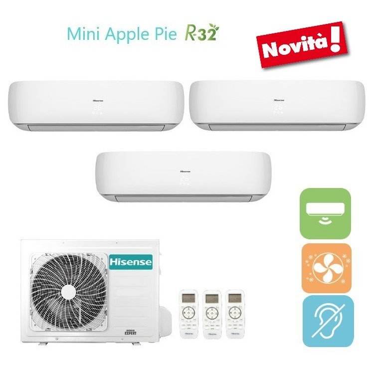 Hisense Trial Split Inverter Aire Acondicionado MINI APPLE PIE Serie 9 + 12 + 12 con 3AMW72U4RFA Wi-Fi a la vista 9000 + 12000 + 12000 +