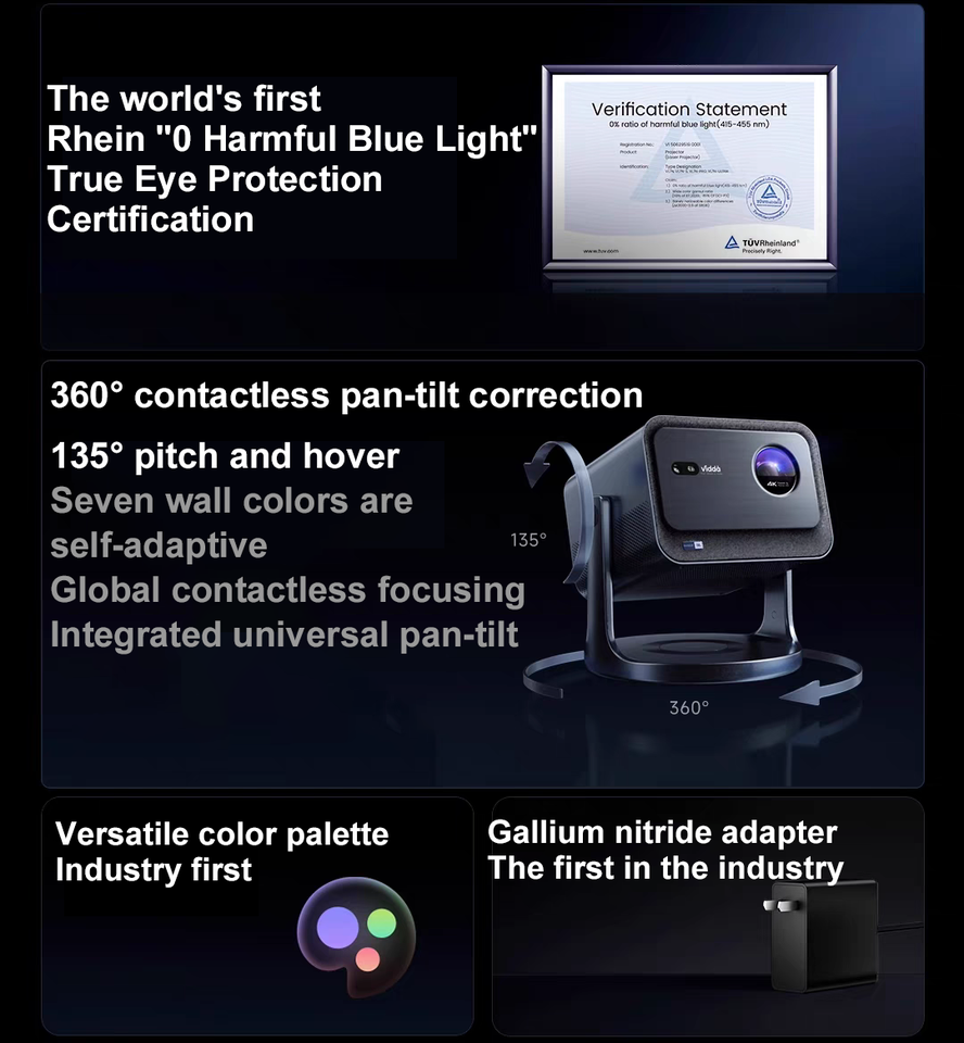 Hisense Vidda C2S Native 4K Proyector láser de tres colores Smart 2000 CVIA Lumens 1700:1WiFi 6 Home Movie Mini proyector portátil