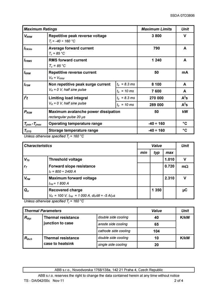 Baja tensión en estado activo, características de avalancha inversa, alta fiabilidad operativa, apto para operación en paralelo.Descripción