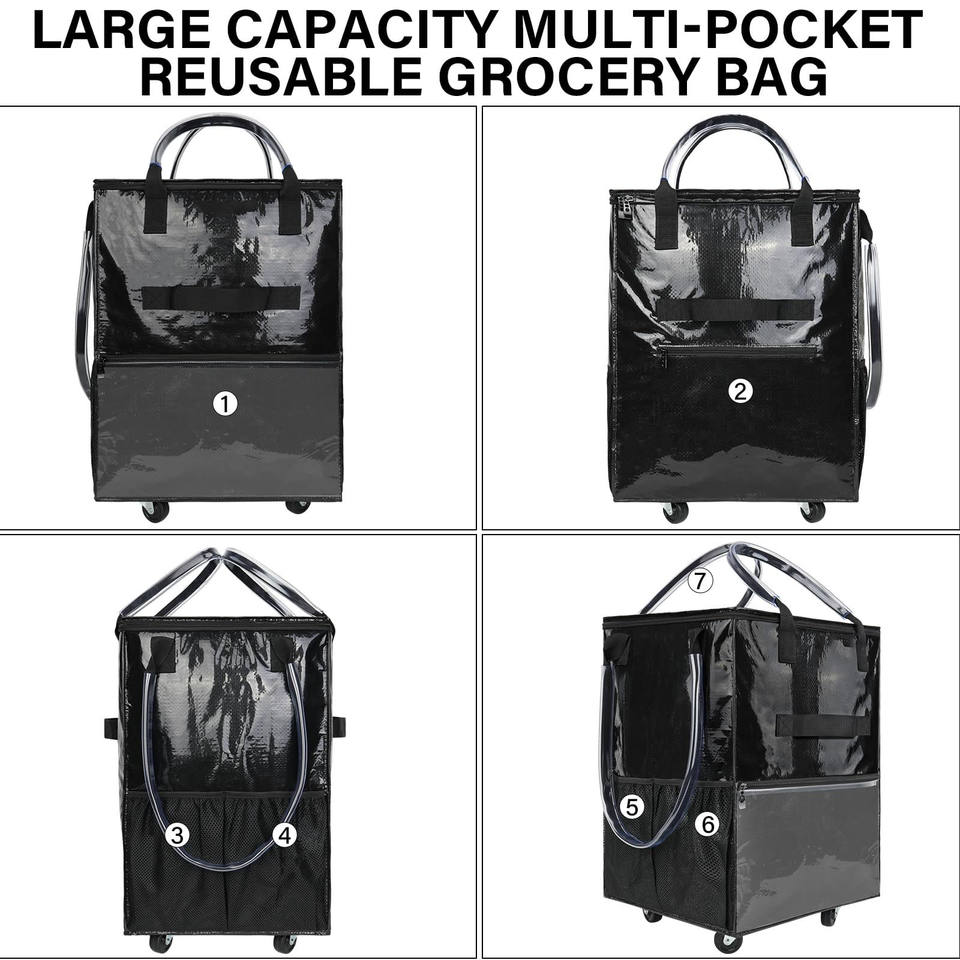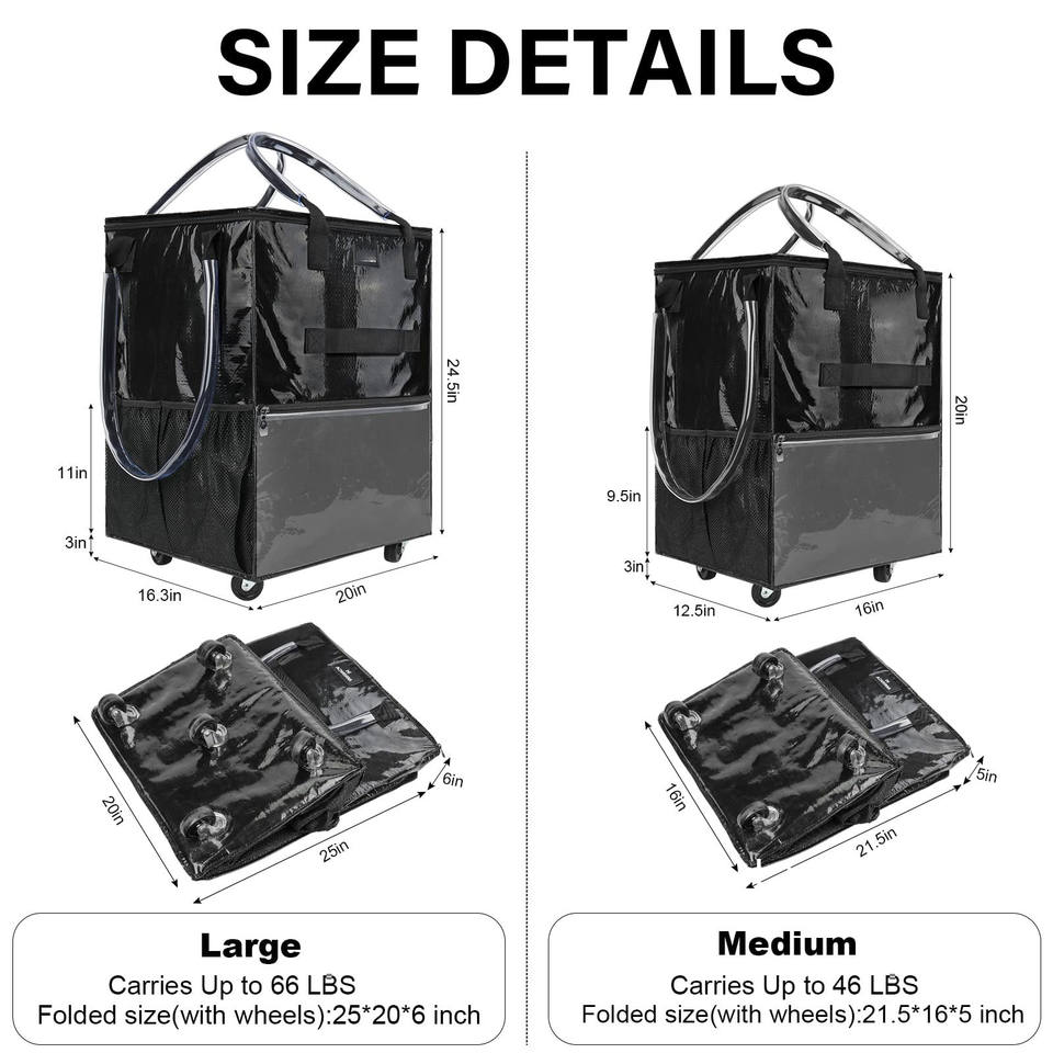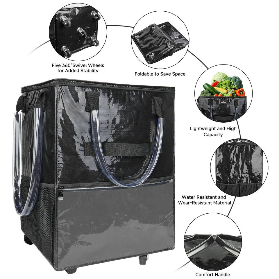Carrito de Compras Plegable Hitree con 2 Ruedas, Bolsa Extraíble, Diseño Ligero, Cierre de Cremallera y Asa de Tela PP