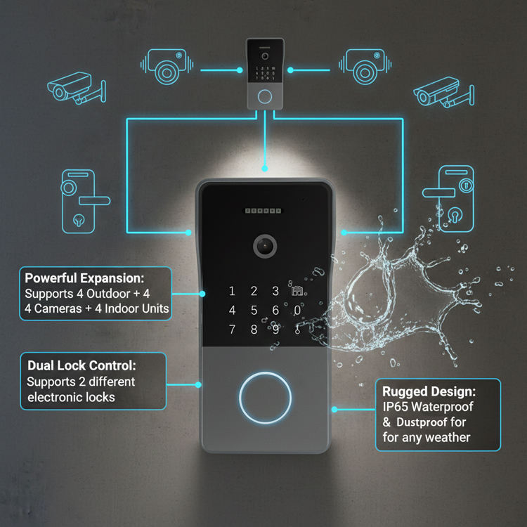 Kit de Intercomunicación Hiwink Poe para 4 Apartamentos, Sistema de Videoportero con Cámara 2K HD, Reconocimiento Facial y de Palma de la Mano, Compatible con Tuya Videocitofono