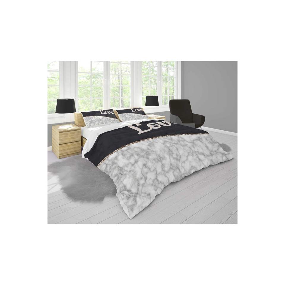 Juego de funda de edredón doble con estampado Digital 3D de amor, tamaño King/Twin, 2 fundas de almohada con personaje de planta, ropa de cama de algodón