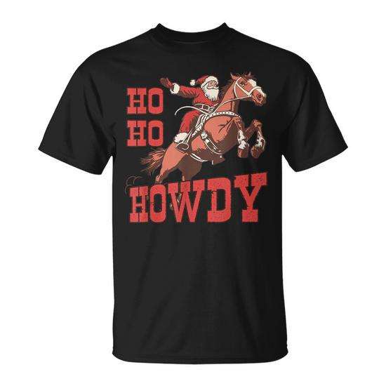 Camiseta Navideña Unisex para Adultos con Estampado de Papá Noel Montando a Caballo, Cuello Redondo, Manga Corta, Serigrafía