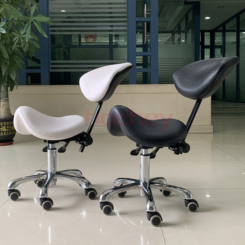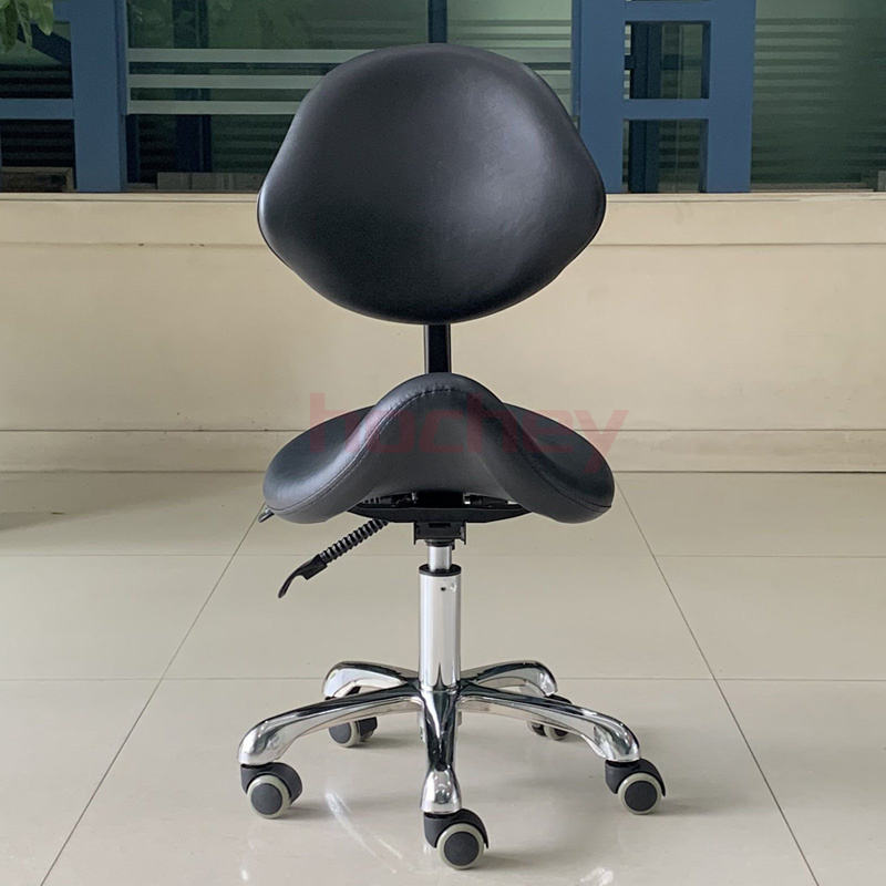 Taburete Redondo Giratorio Elevador de Fábrica Hochey, Taburete Móvil de PU Negro para Médico, Taburete Redondo para Salón de Belleza con Respaldo