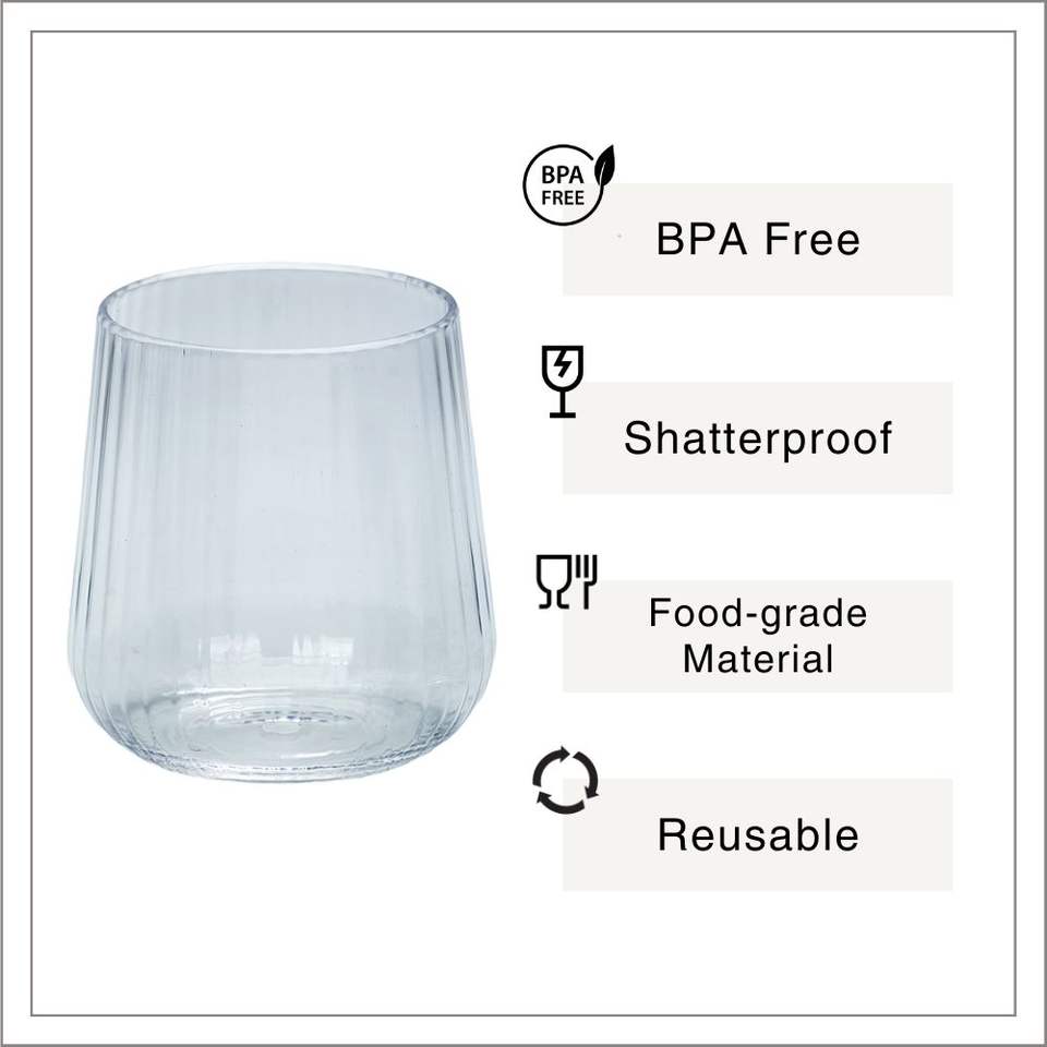 [Holar] Vasos de Vino sin Tallo de Plástico Irrompible Acanalado Moderno Hecho en Taiwán de 14oz para Playa, Piscina y Camping