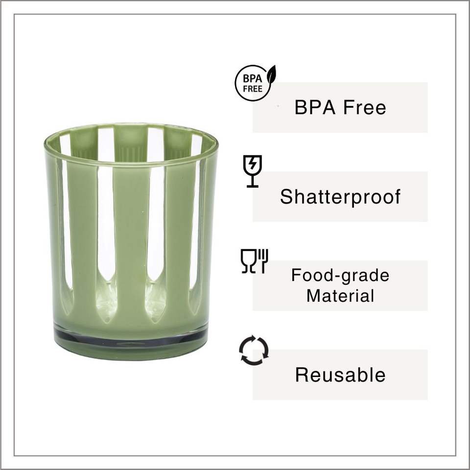[Holar] Vasos de Plástico Reutilizables de 15oz con Diseño de Rayas en Verde Salvia, Hechos en Taiwán, para Fiestas al Aire Libre y Piscina