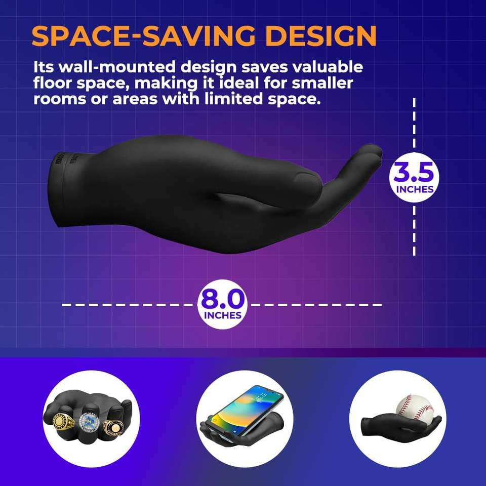 Soporte de Pared para Pelotas, Diseño de Mano Esculpida Negra, para Pelotas de Béisbol y Tenis, Almacenamiento Seguro para Niños