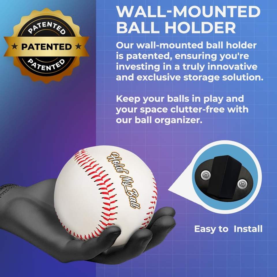 Soporte de Pared para Pelotas Hold My Ball, para Pelotas de Béisbol, Tenis y Cricket, Negro, Accesorios Esculpidos para Mano Izquierda/Derecha