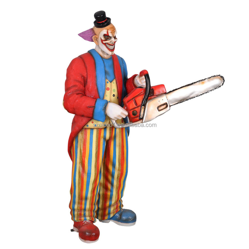 Vacaciones Halloween evento Fiesta decoración fibra de vidrio estatua Navidad miedo payaso con motosierra