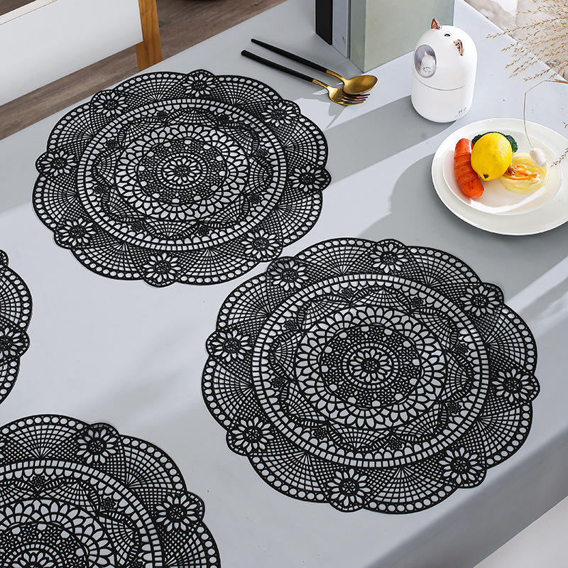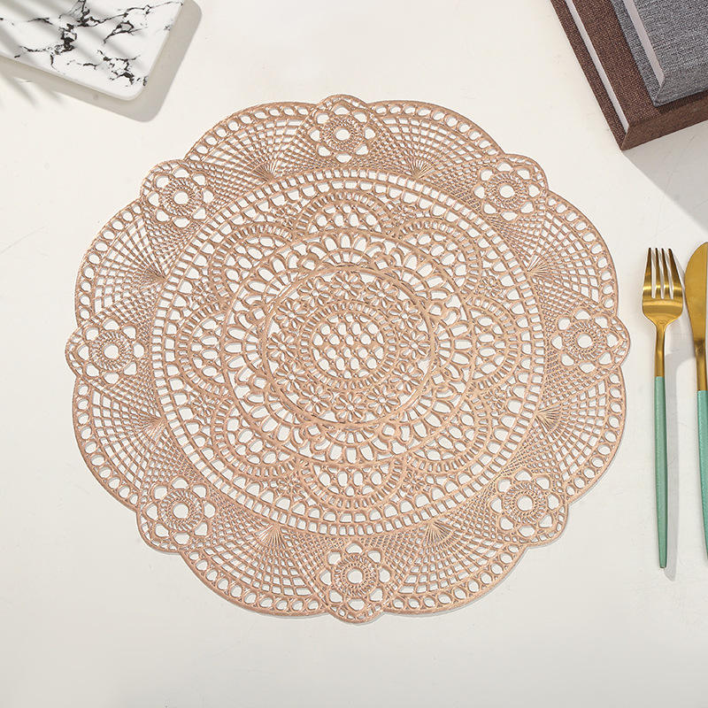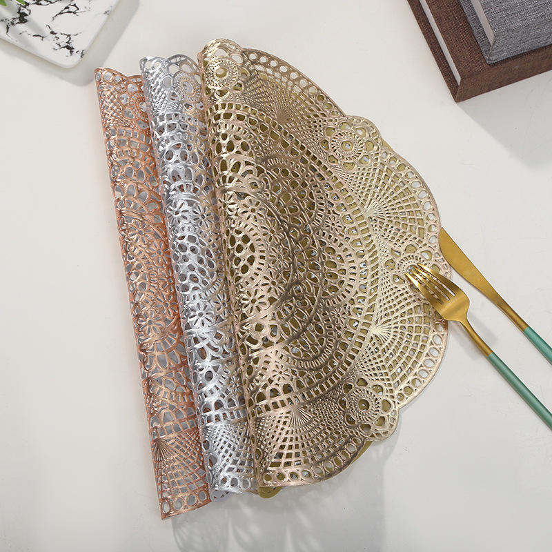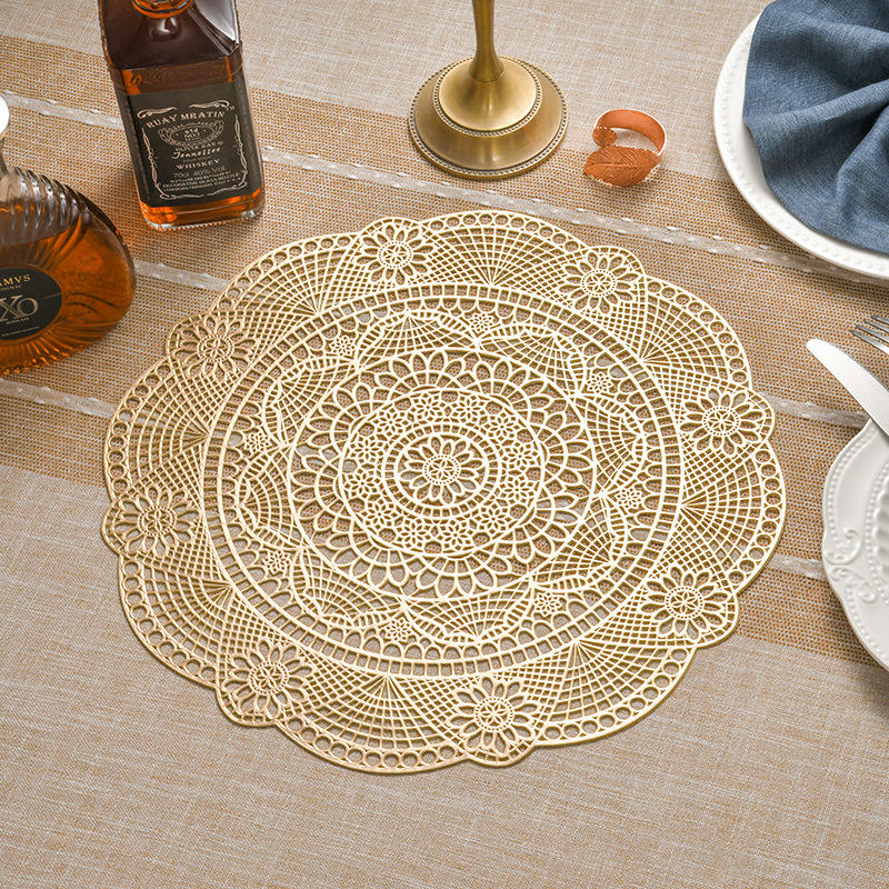 Manteles Individuales de PVC Hueco con Estampado Dorado, Aislantes para Tazas, Bandejas de Plástico para Mesa de Comedor, Resistentes al Calor para el Hogar y la Cocina
