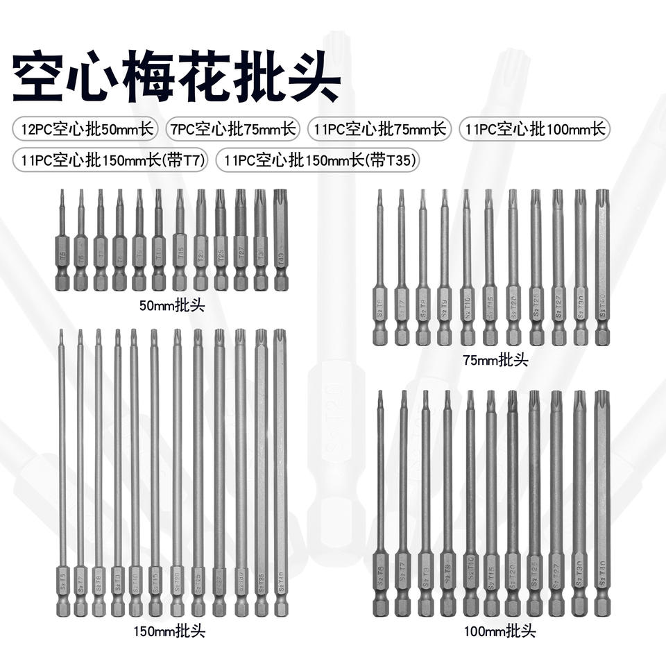 Hollow Torx Screwdriver Bit Set 50 75 100 150mm Industrial Grade Plum Blossom Shape Magnetic Sandblasted Tip