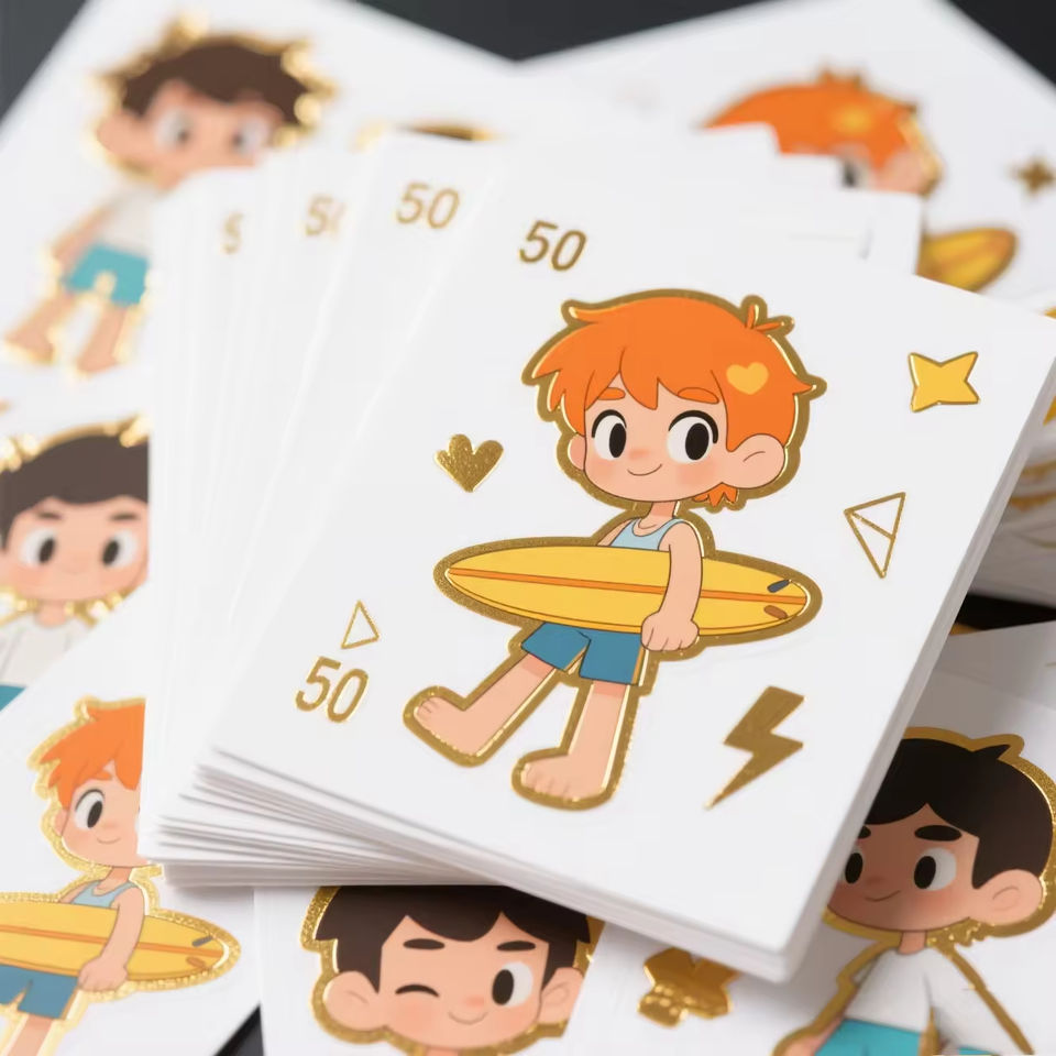Acabado de barniz UV: El acabado de barniz UV proporciona una capa adicional de protección contra los daños del sol, mejorando la durabilidad y longevidad de la pegatina.