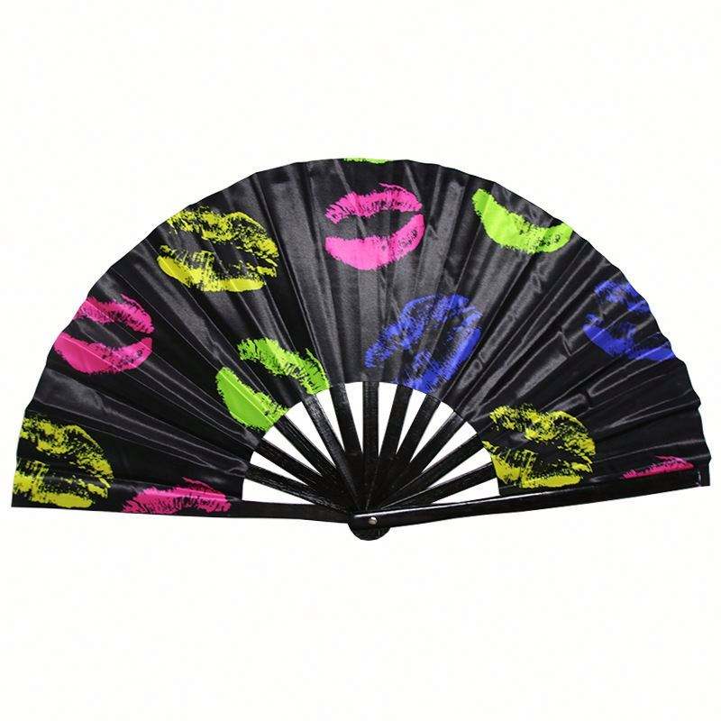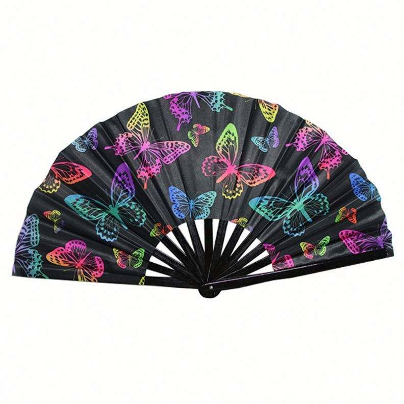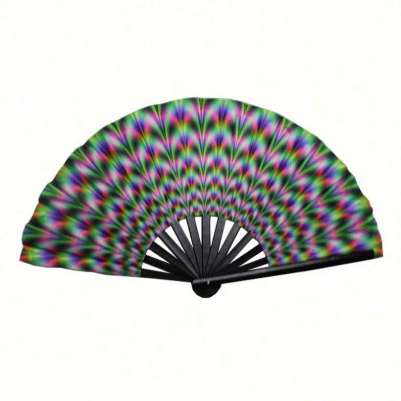 Abanico Plegable de Bambú y PVC de 13 Pulgadas, Holográfico, Personalizado, Hecho a Mano, Grande, para Mujeres y Fiestas