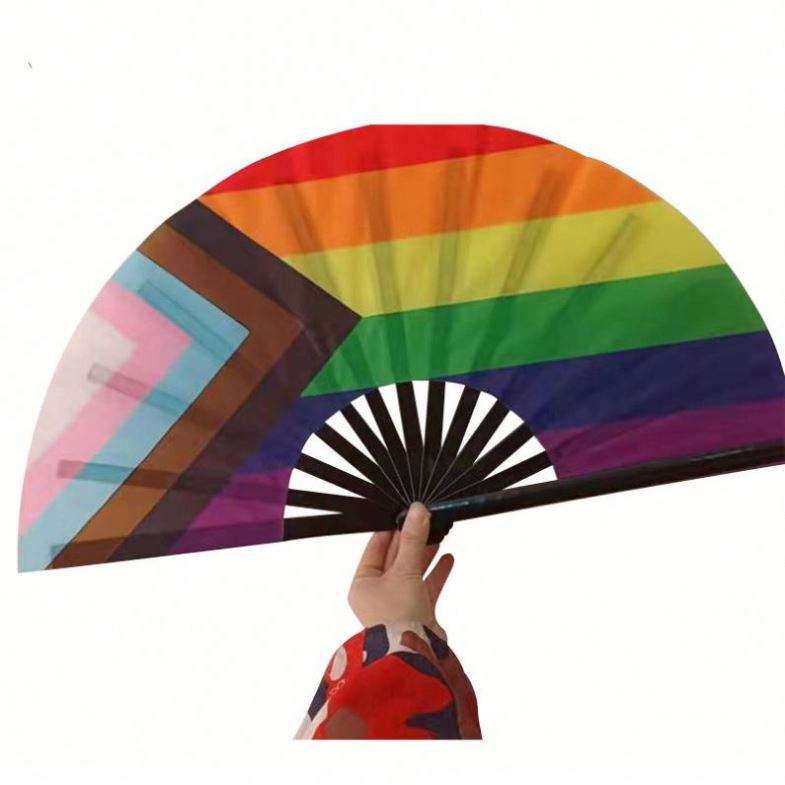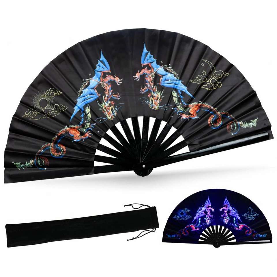 Abanico de Mano Holográfico Reflectante Grande, de Bambú Premium, Ecológico, Ideal para Halloween