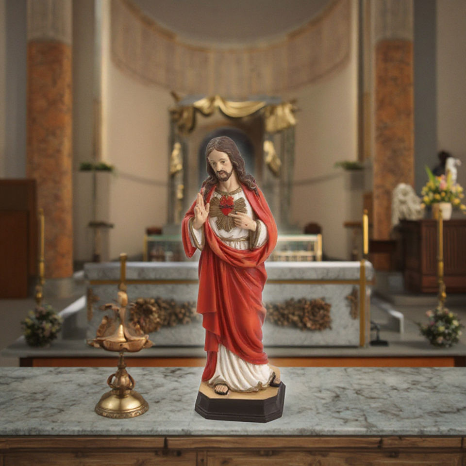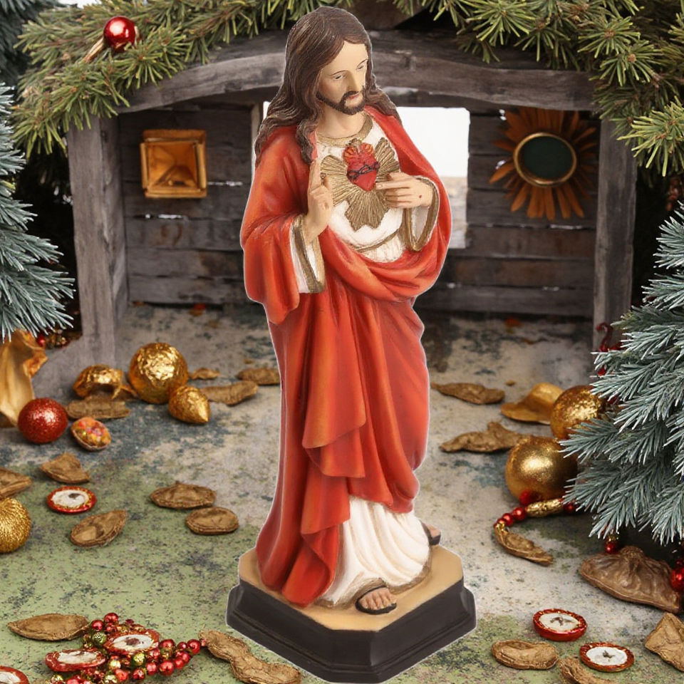 Estatuas católicas de la Sagrada Familia, artesanías religiosas de resina para el hogar, decoración de la Iglesia, figura del Sagrado Corazón de Jesús, tema de Arte de Navidad
