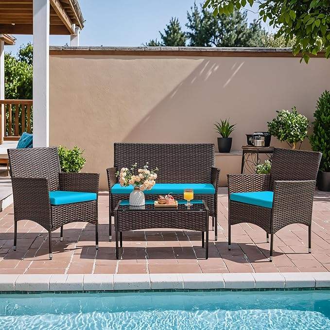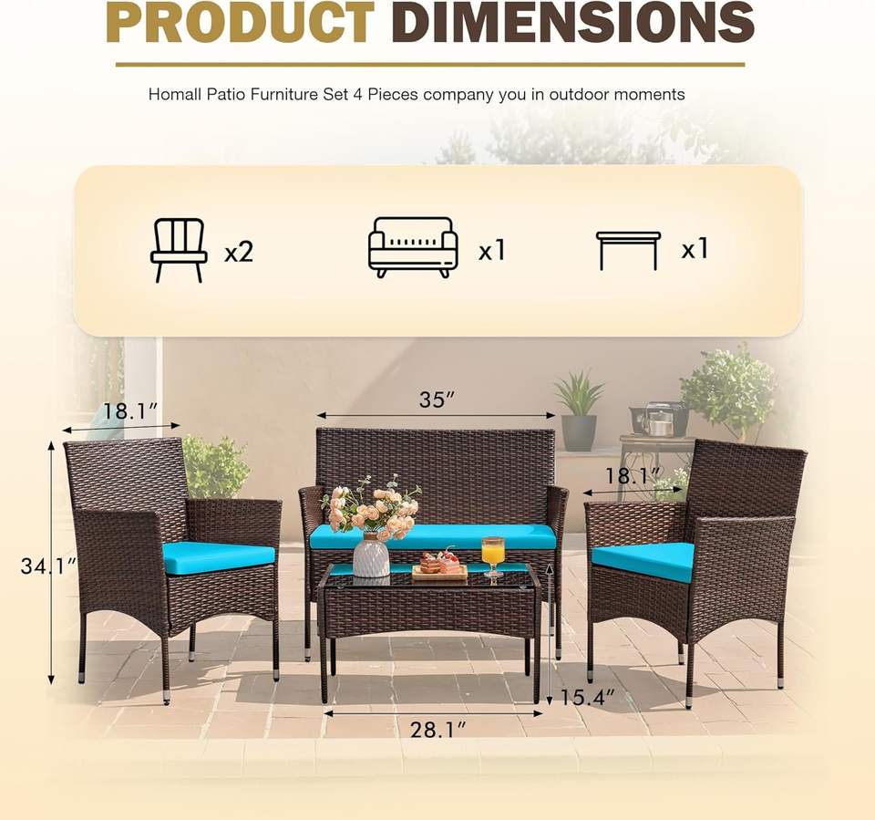 Homall - Juego de Sofás de Mimbre para Exteriores, 4 Piezas, con Cojines, para Patio, Jardín, Balcón