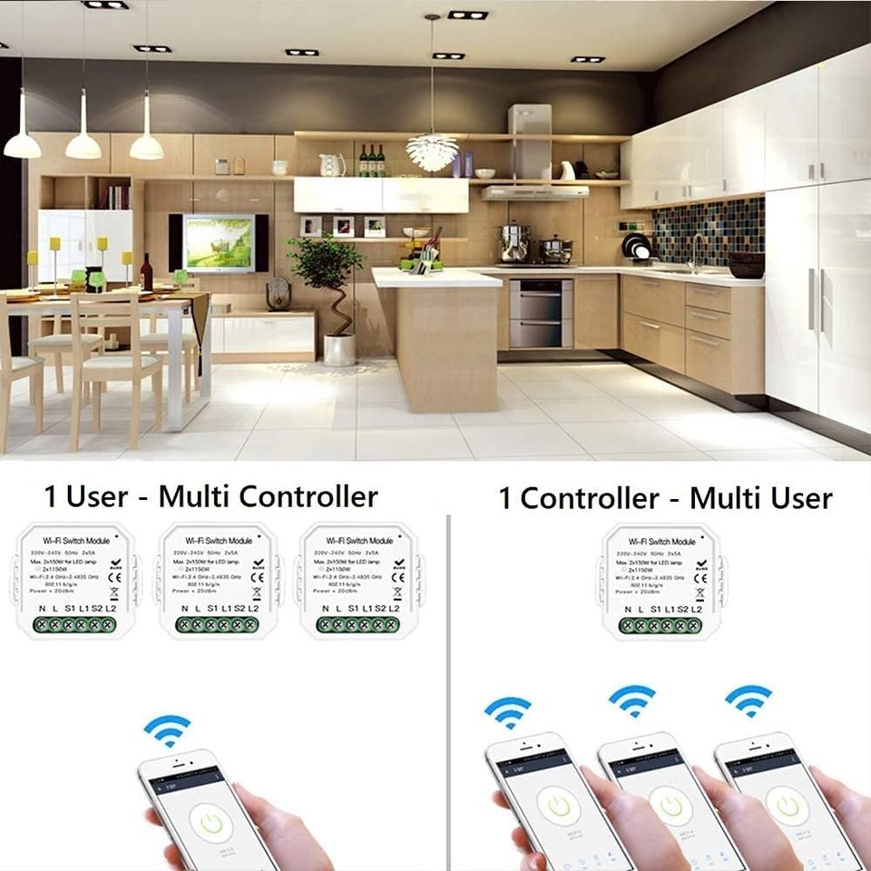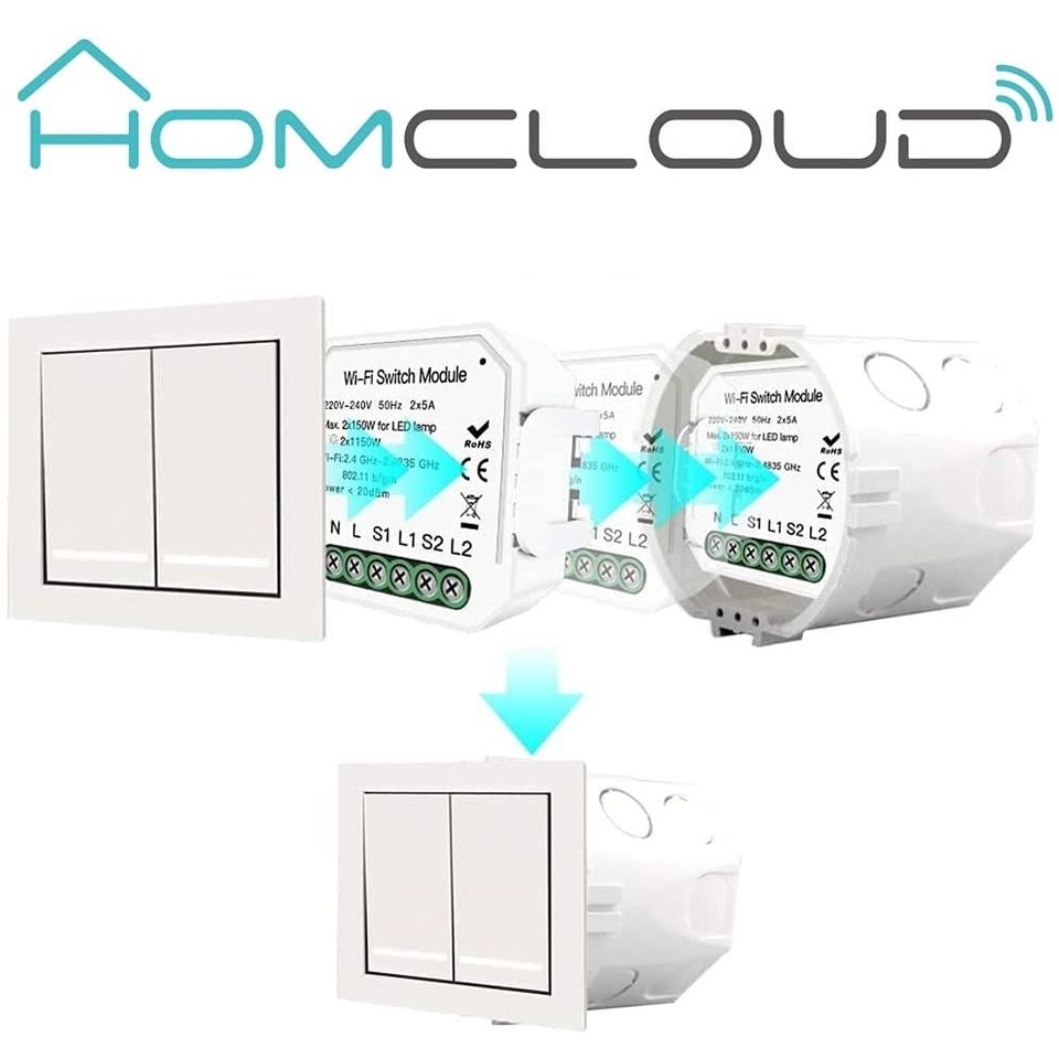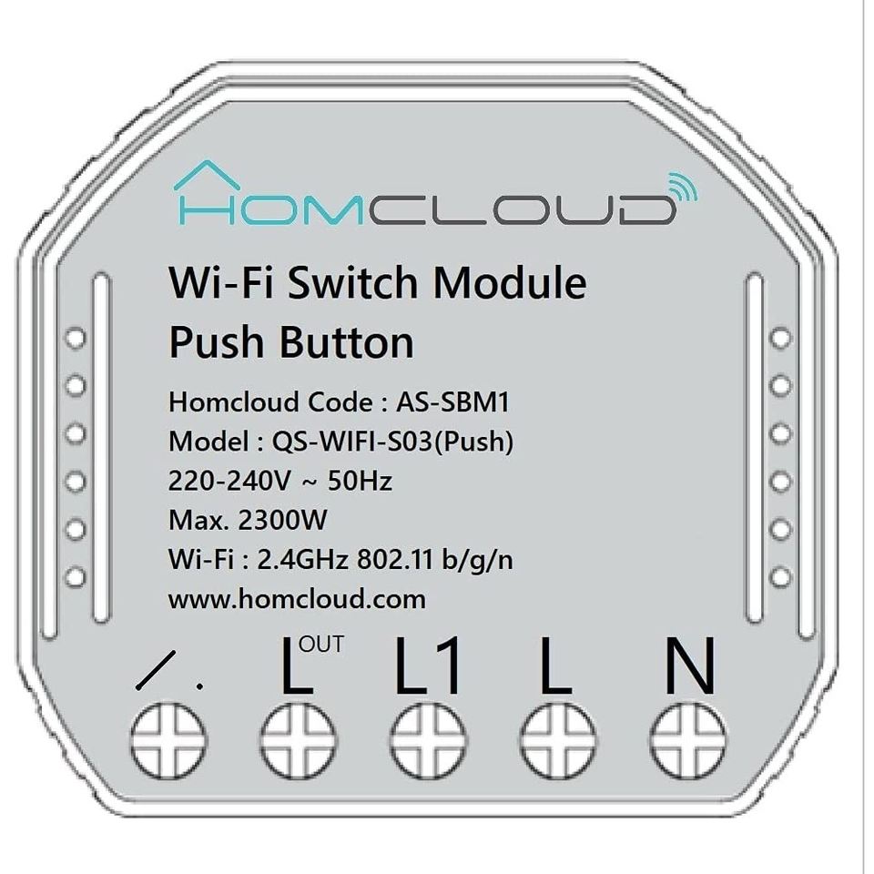 Módulo de Interruptor Wi-Fi Homcloud con Botón Pulsador 220-240V 2300W, Control de Iluminación Inteligente