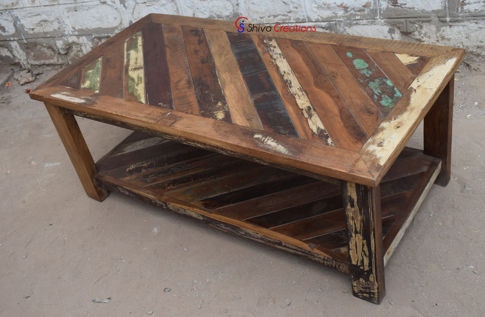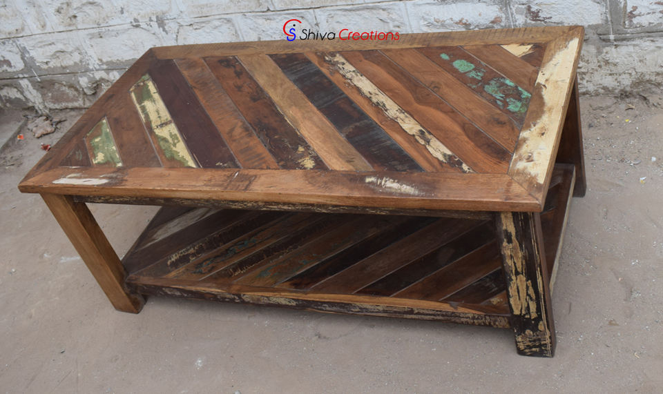 La angustia casera reclamó la mesa de centro de madera reciclada de los muebles
