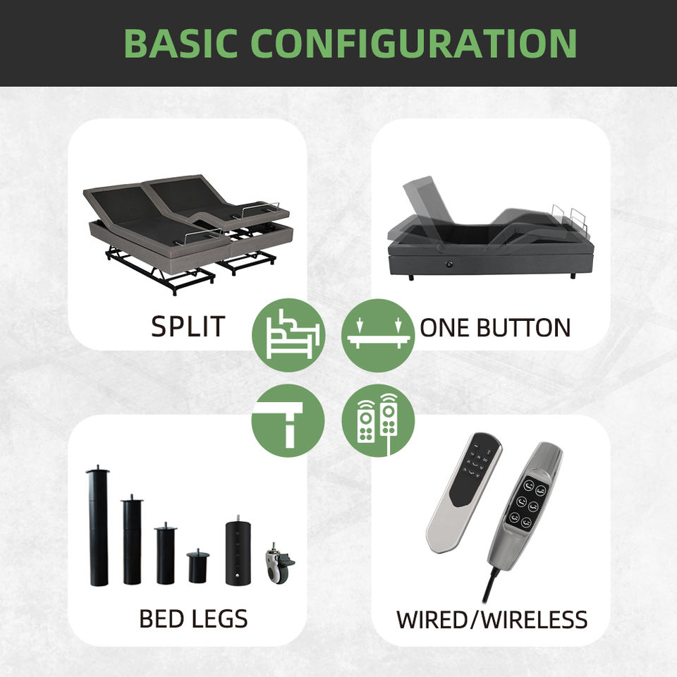 almacenamiento, HI-lo ajustable, Articulación cabeza y pie, Posición plana preestablecida de un toque, Anti-ronquido, Motor OkinCaracterística