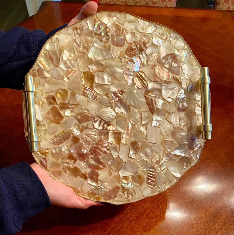 Bandejas decorativas inspiradas en patrones clásicos para el hogar, centro de mesa blanco elegante, bandeja versátil de nácar para decoración moderna del hogar