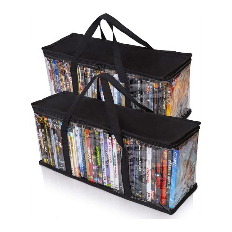 Bolsa de Almacenamiento para DVD, Transparente, de PVC, con Asas Resistentes y Cierre para CD, Videojuegos, Libros y Gorras