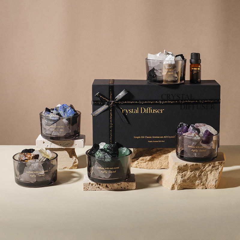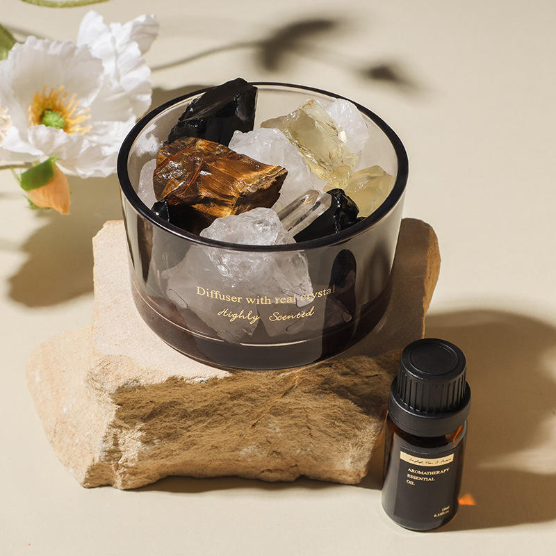 Difusor de piedra de aromaterapia para decoración del hogar, conjunto de difusor de aceite esencial de aromaterapia de cristal de Color sin fuego