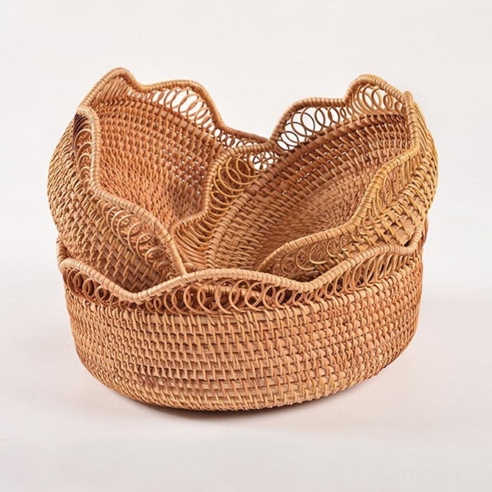 Cuenco de decoración para el hogar, cestas de anidación, venta al por mayor, almacenamiento de frutas naturales, cuencos de nido de ratán tejido de fábrica de Vietnam