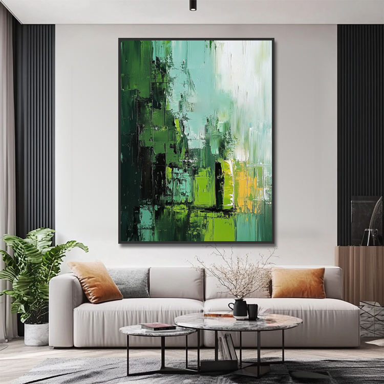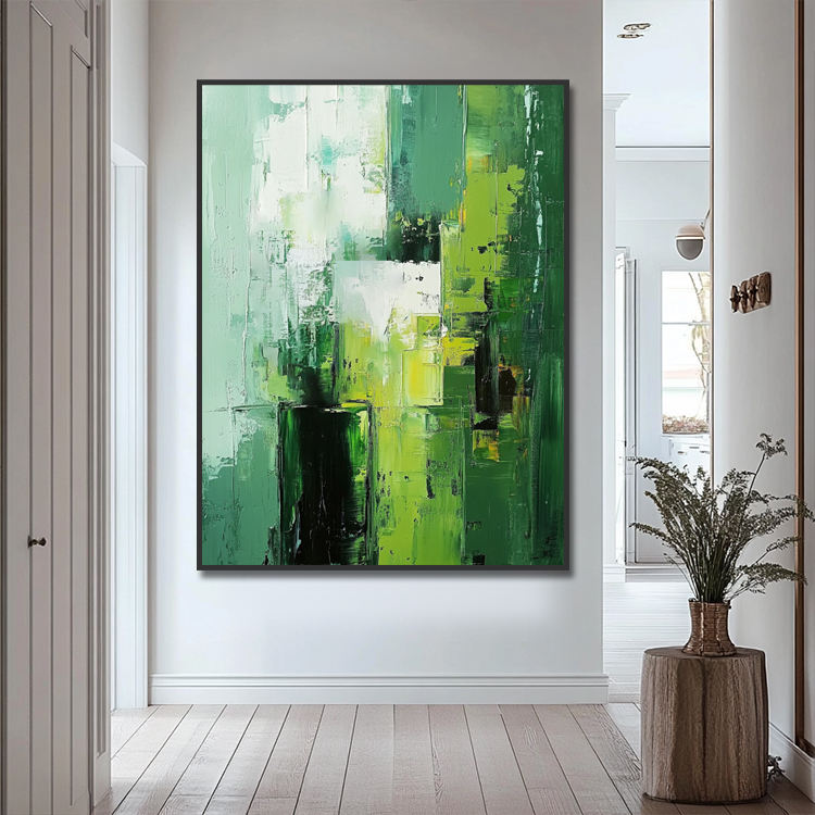 Decoración del Hogar, Obra de Arte Abstracta Acrílica Hecha a Mano, Pintura al Óleo Verde Moderna, Arte de Pared Minimalista en Lienzo