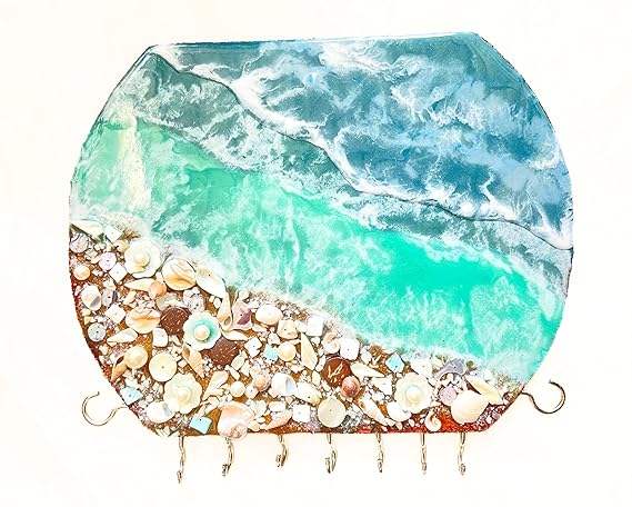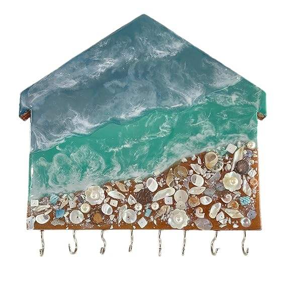 Porta Llaves Decorativo de Madera con Arte en Resina para Decoración del Hogar/Oficina, Llavero Ecológico para Bodas, Cumpleaños, Regreso a Clases