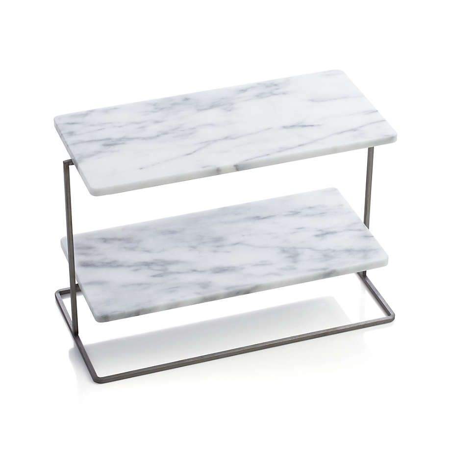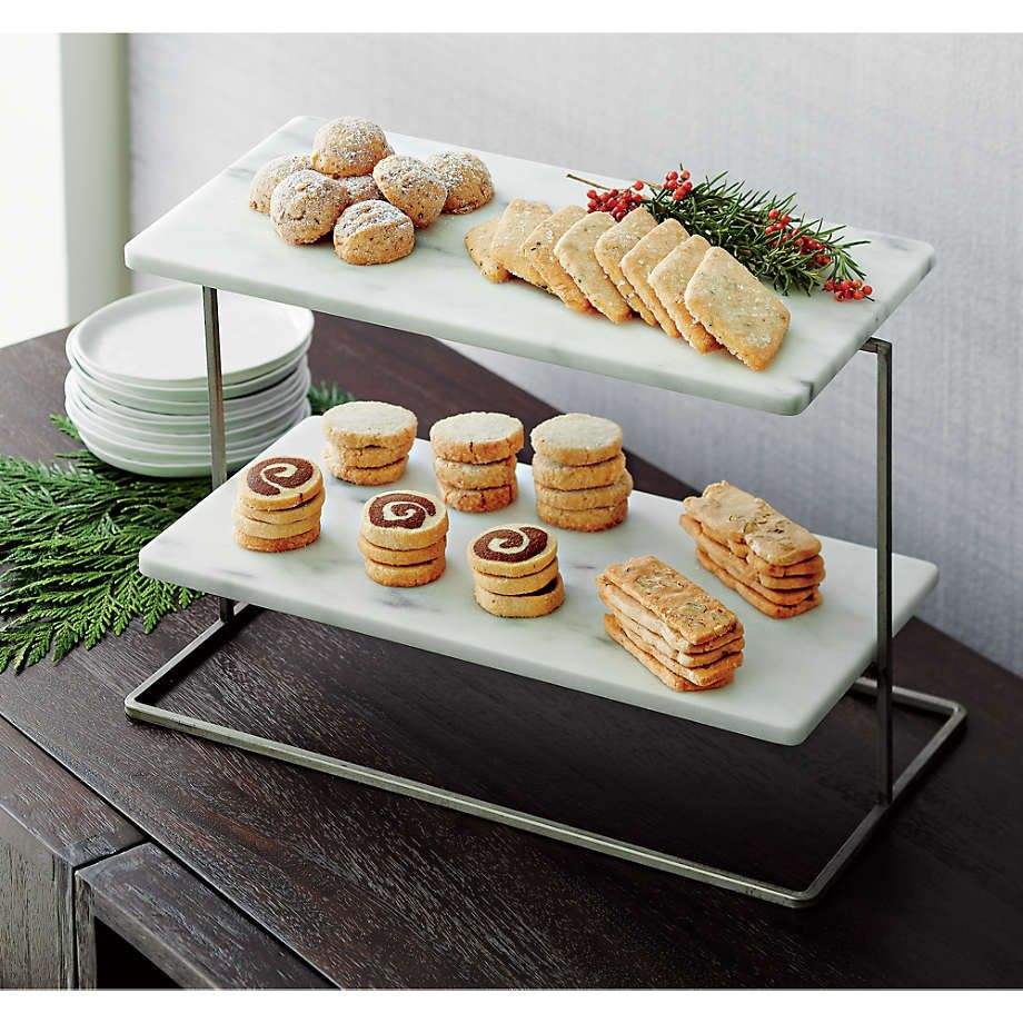 Soporte de postre de dos niveles de mármol para decoración del hogar