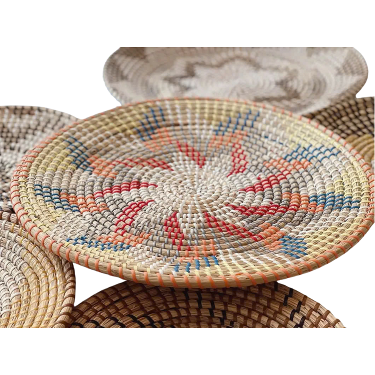 Juego de 7 artículos nuevos para decoración del hogar, decoración de pared bohemia de primera calidad, juego de decoración de arte rústico de paja, cestas de Vietnam, estilo de pared tejida