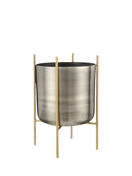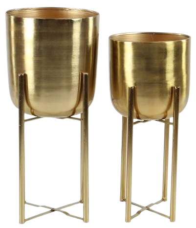 Maceta de decoración del hogar con soporte, Juego de 2 macetas de Interior de Metal de Color dorado para Hotel y jardín hechas a mano